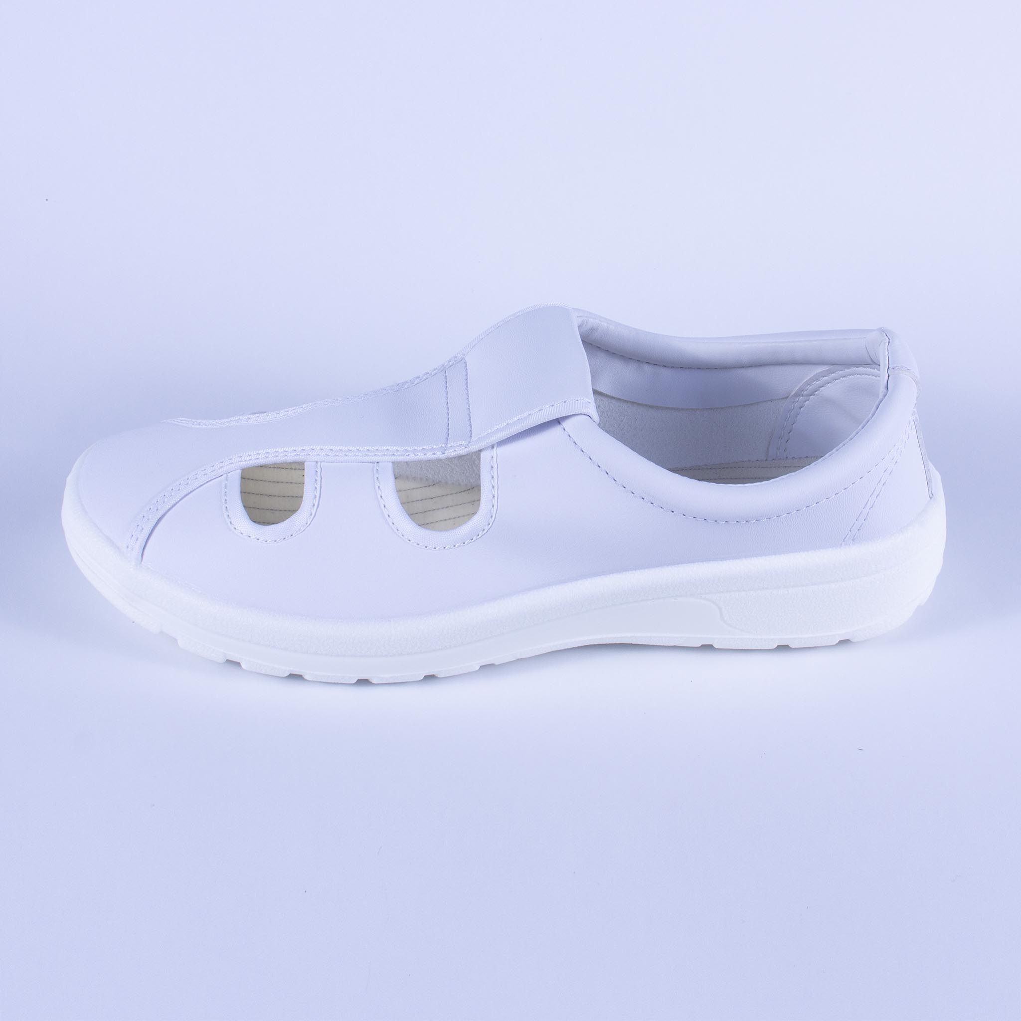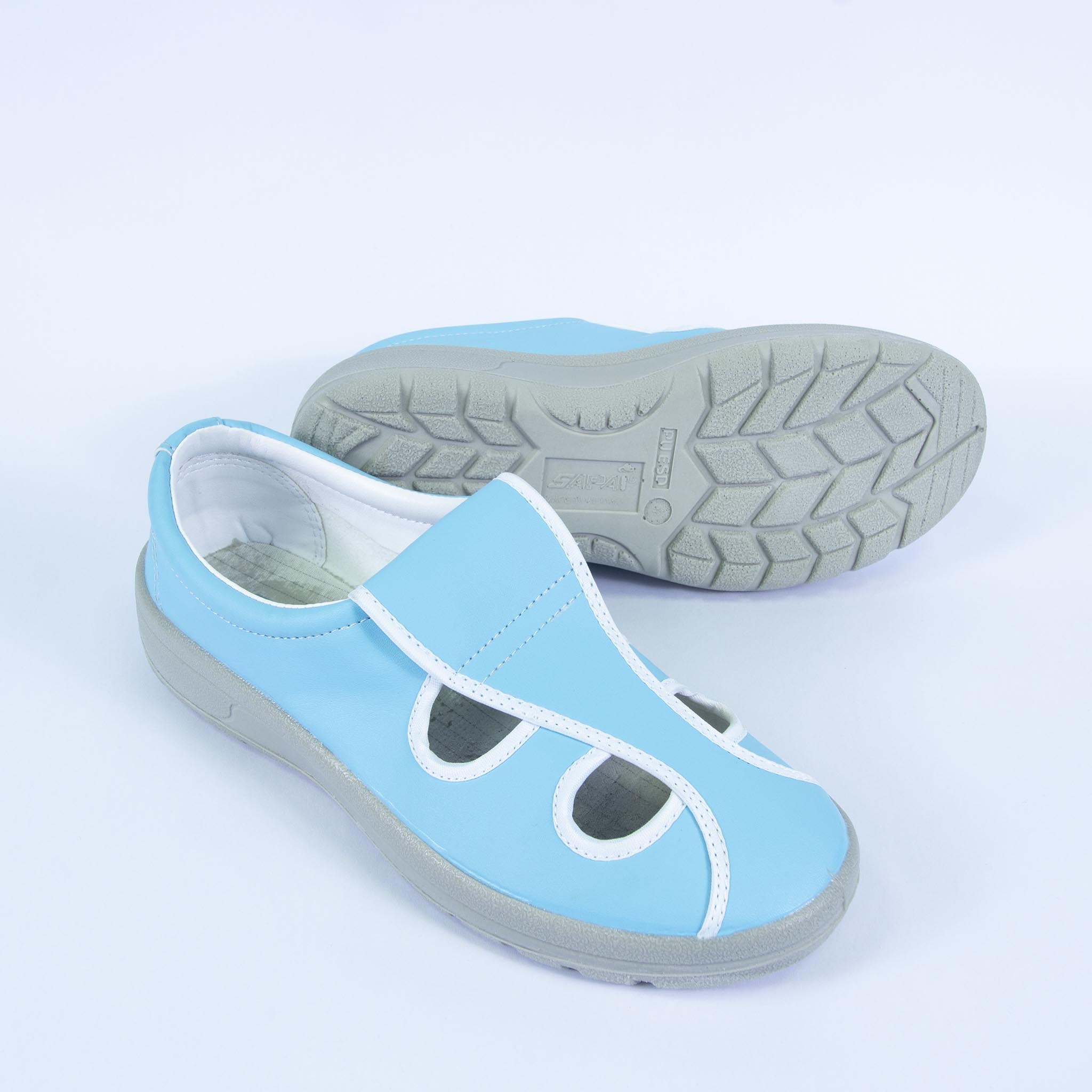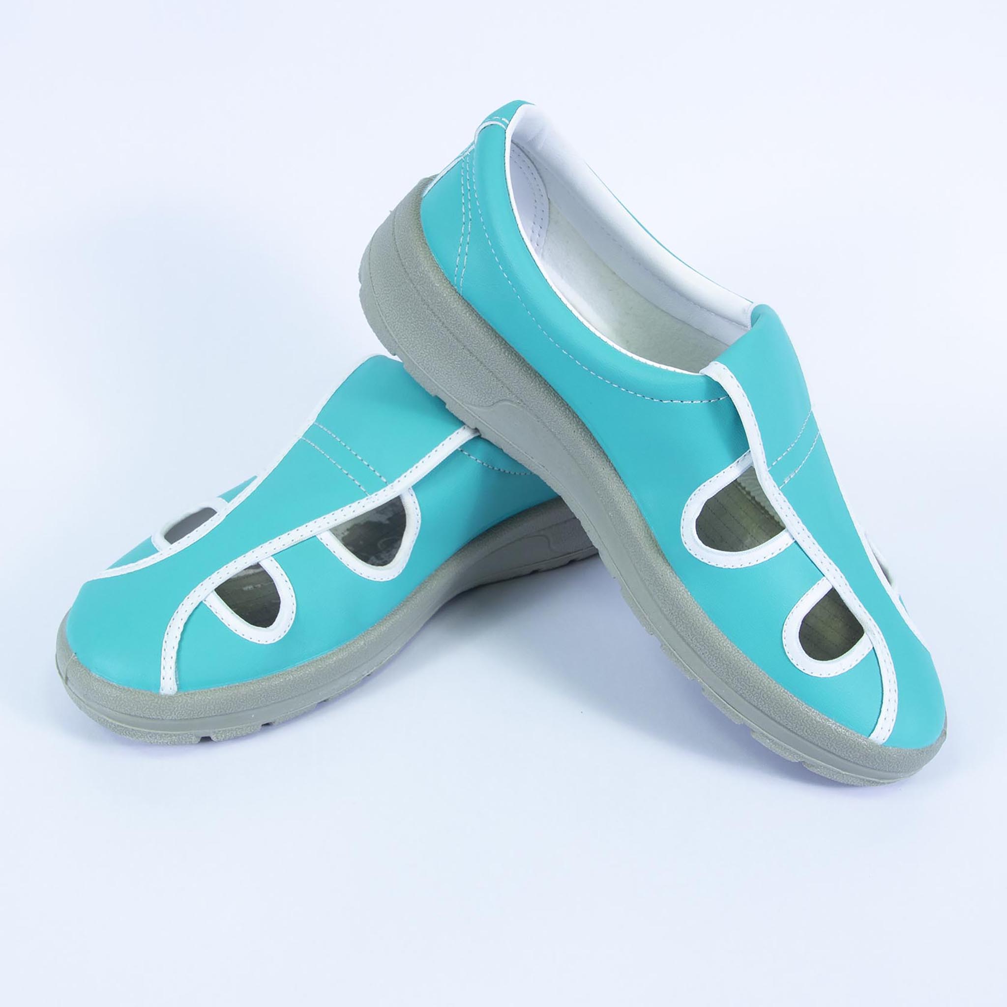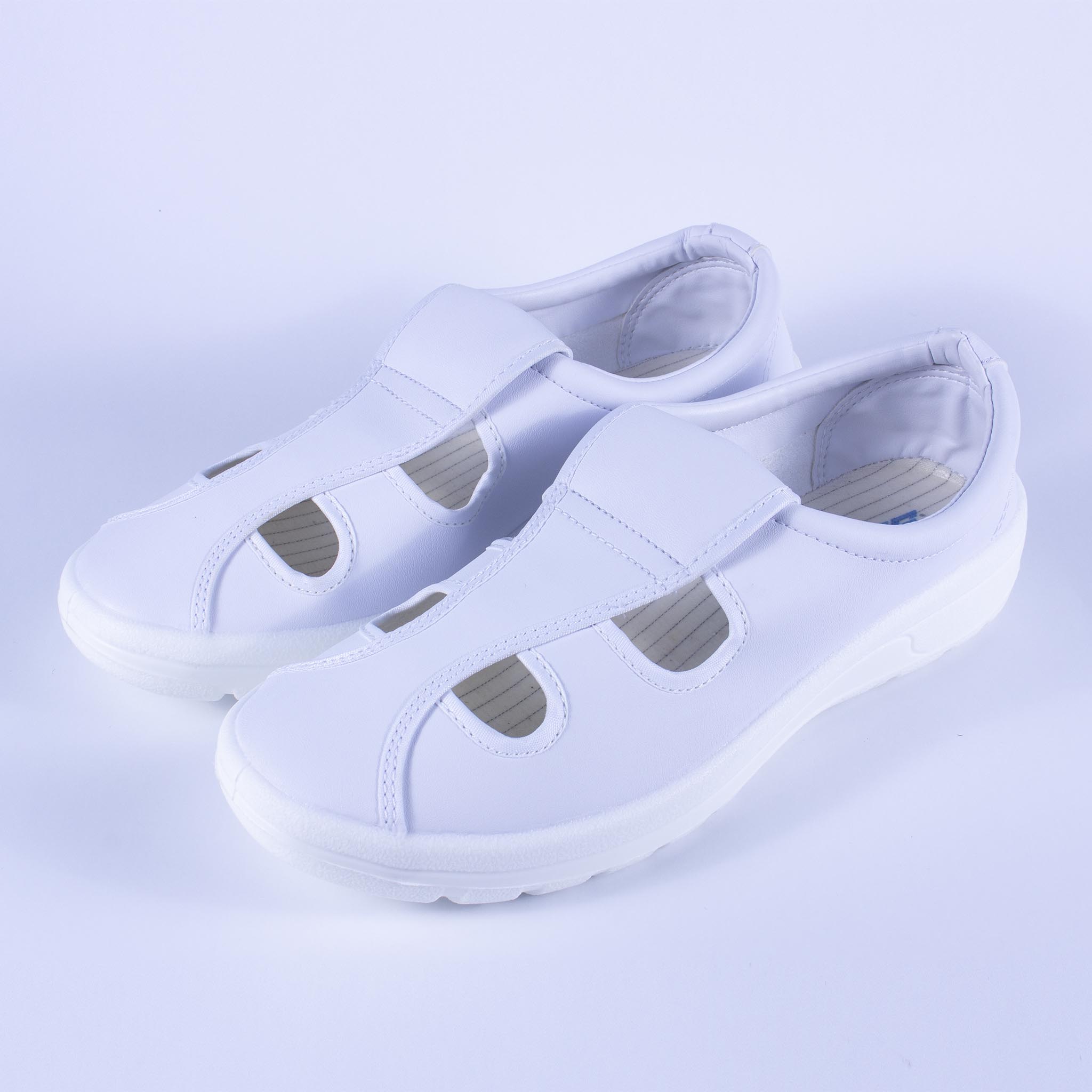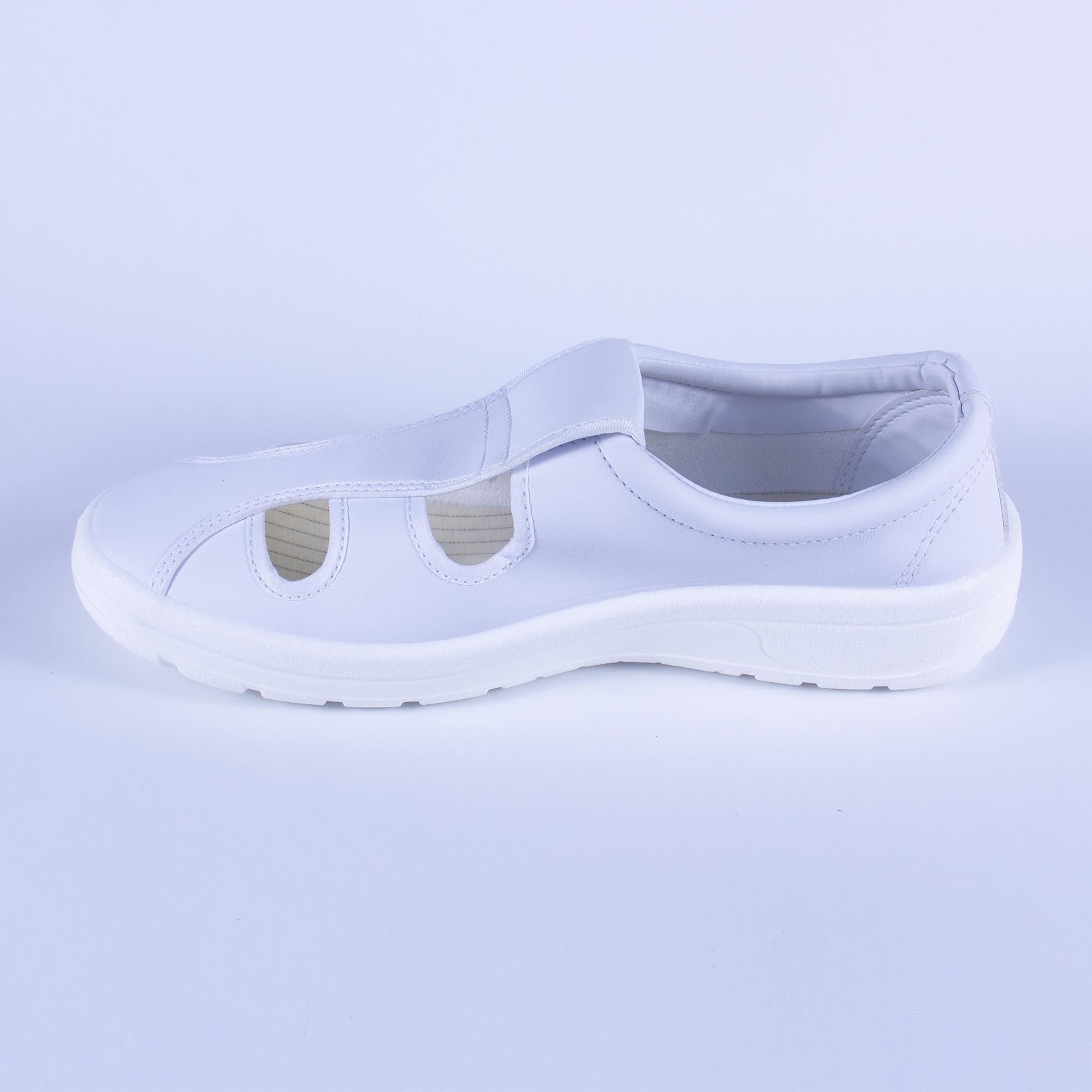 - Giày 4 lỗ ESD đế PU được thiết kế nhiều phần hở trên mũ giày tạo cảm giác thông thoáng cho bàn chân.