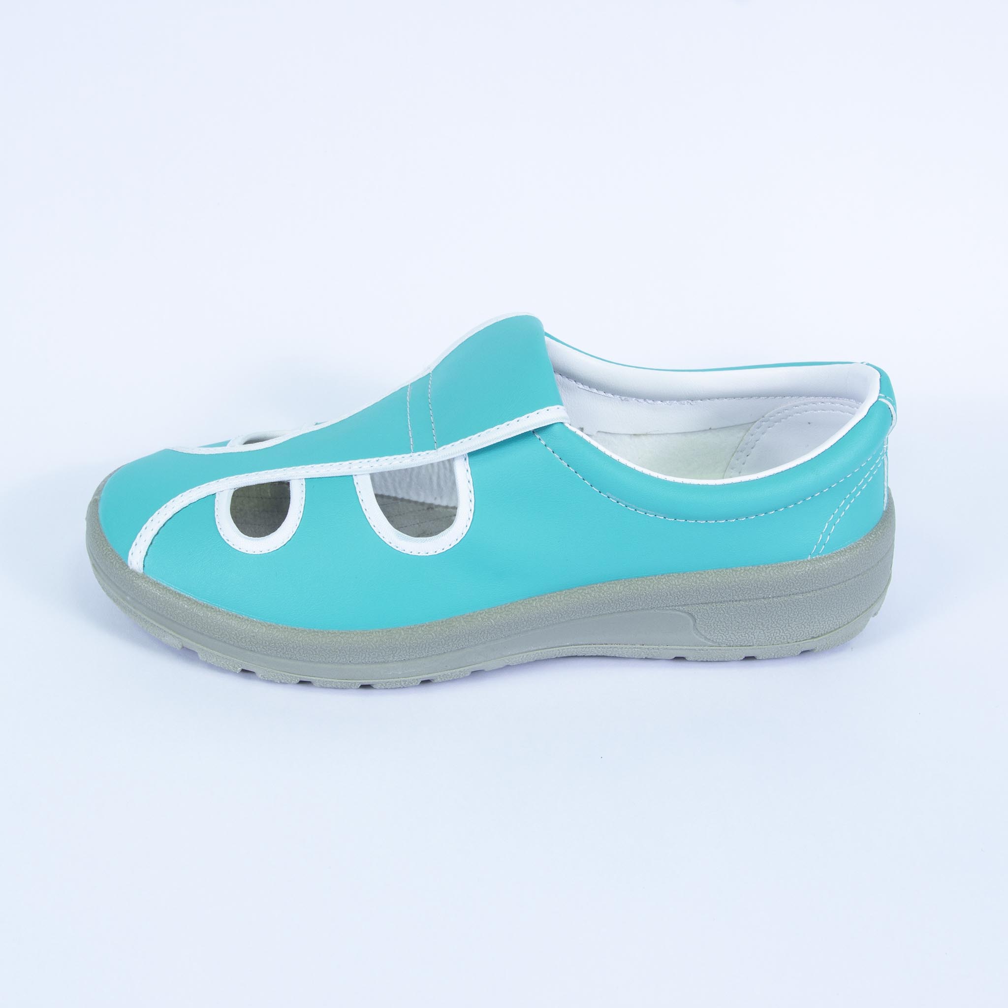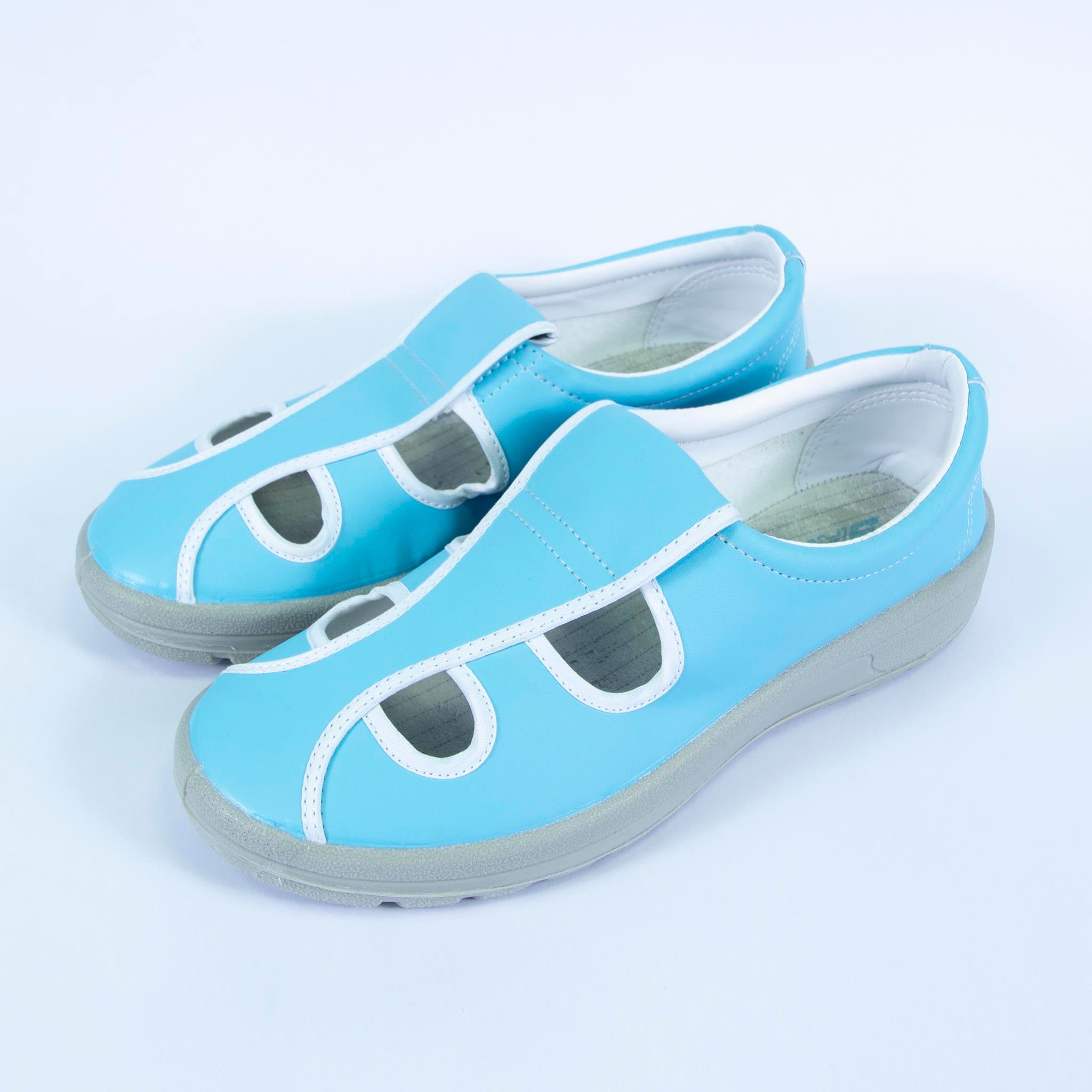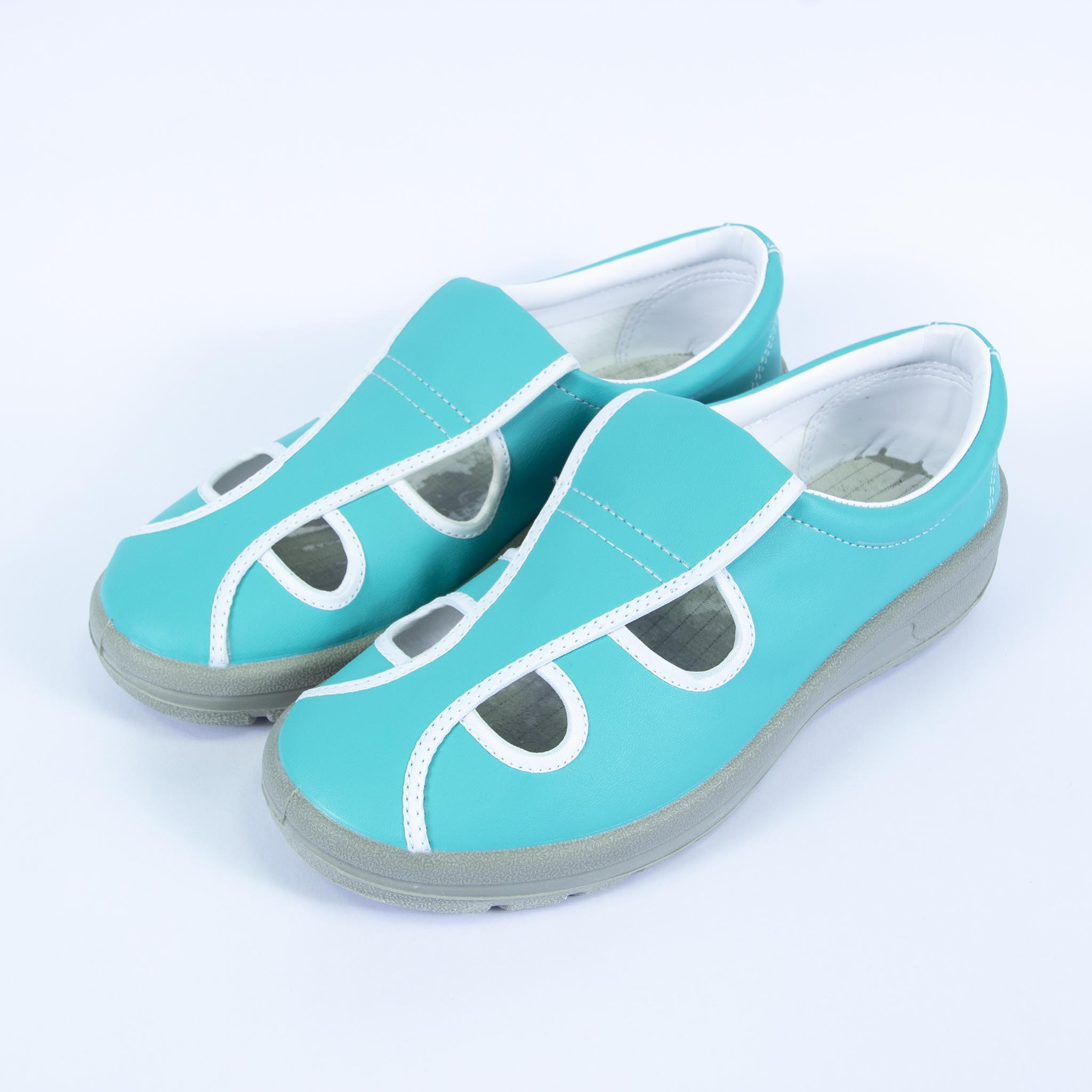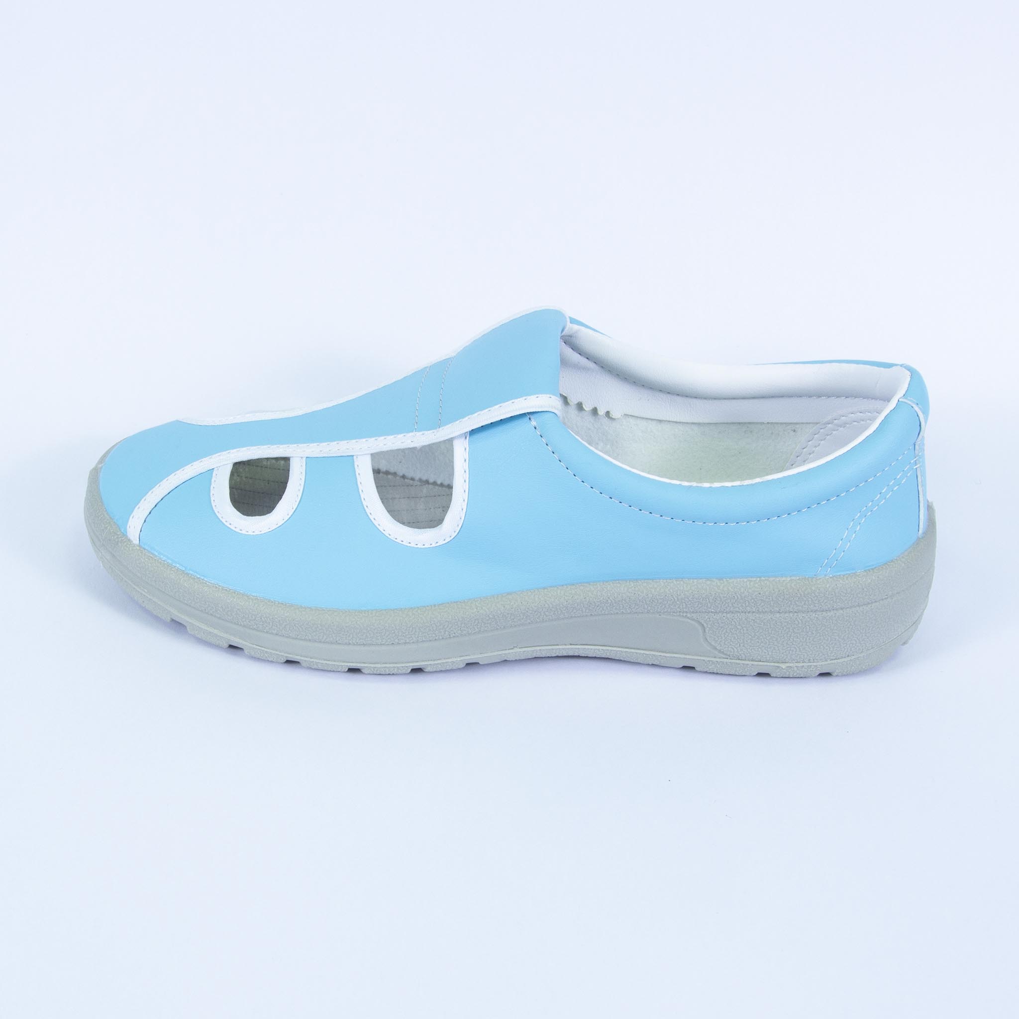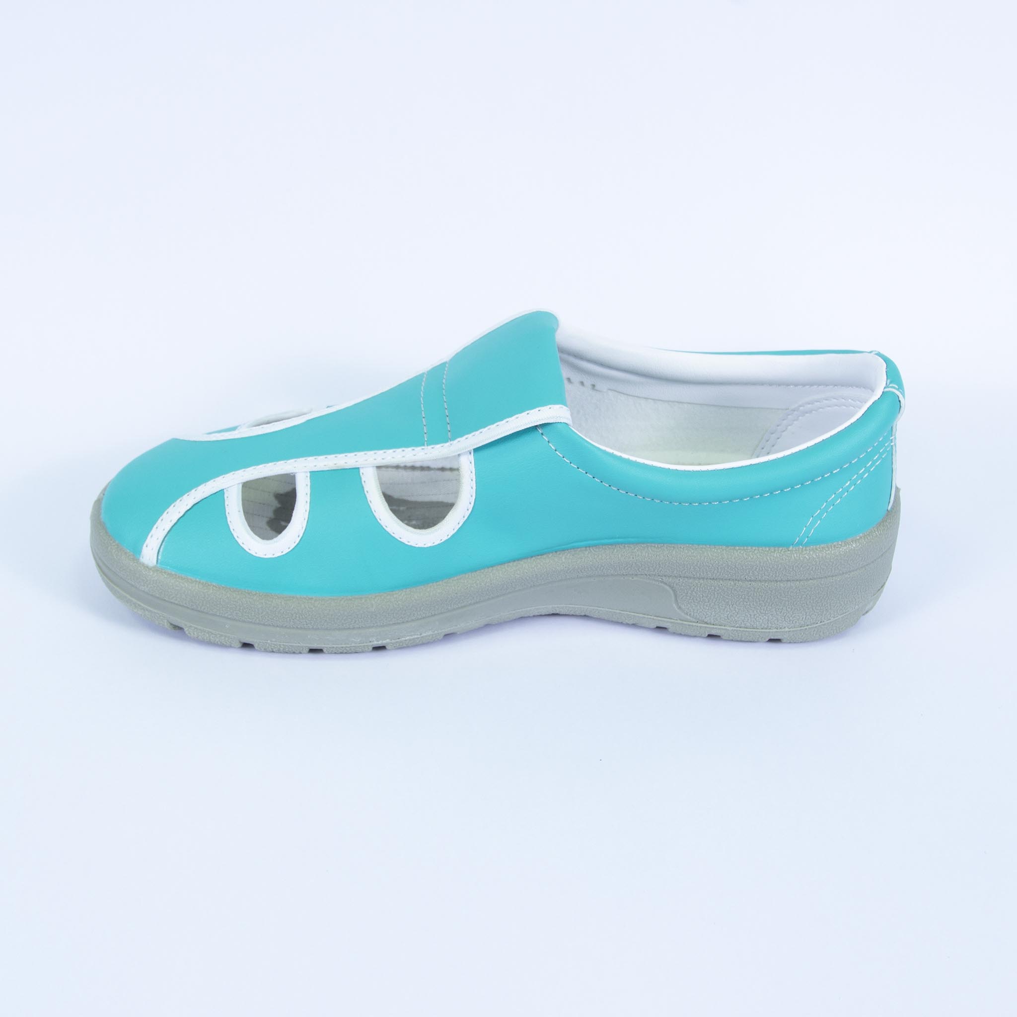 - Giày 4 lỗ ESD đế PU được thiết kế nhiều phần hở trên mũ giày tạo cảm giác thông thoáng cho bàn chân.